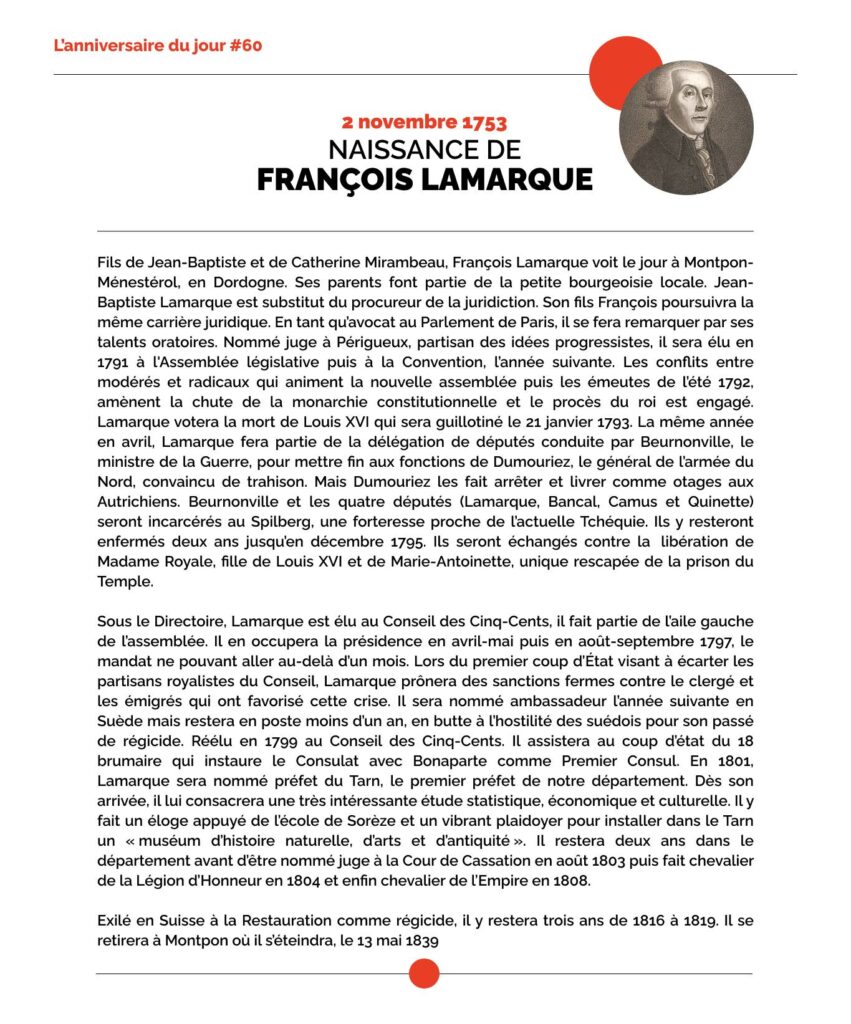 L’anniversaire du jour #60 – FRANÇOIS LAMARQUE – 2 novembre 1753